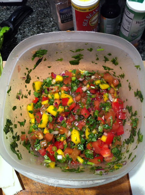 On to the mango salsa. I basically modified a recipe from my friend June Louk's book, Rawumptious Recipes, and I made it into a savory-sweet mango version. So good. I've had a few other people try it, and so far it's a hit. For now it's made an excellent snack. I have to ask June if I can post the recipe in the future.